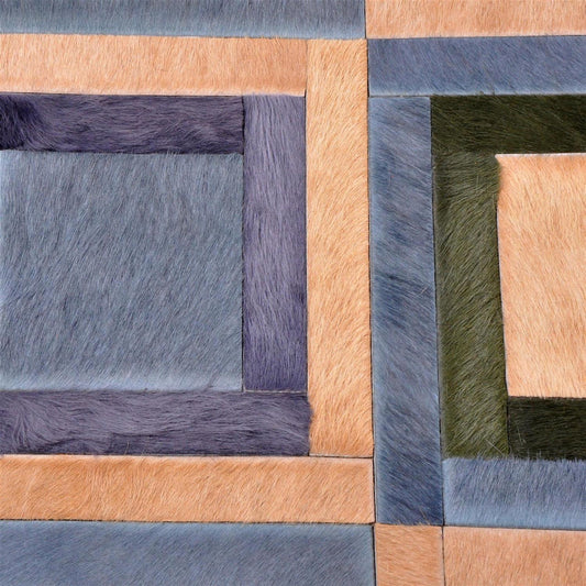 Patchwork Kuhfell Teppich B120 x L180cm blau beige Quadrate Rechtecke geklebt ohne Naht