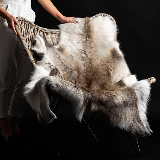 Rentierfell original aus Skandinavien, hell-dunkel, XL (140-145 cm)