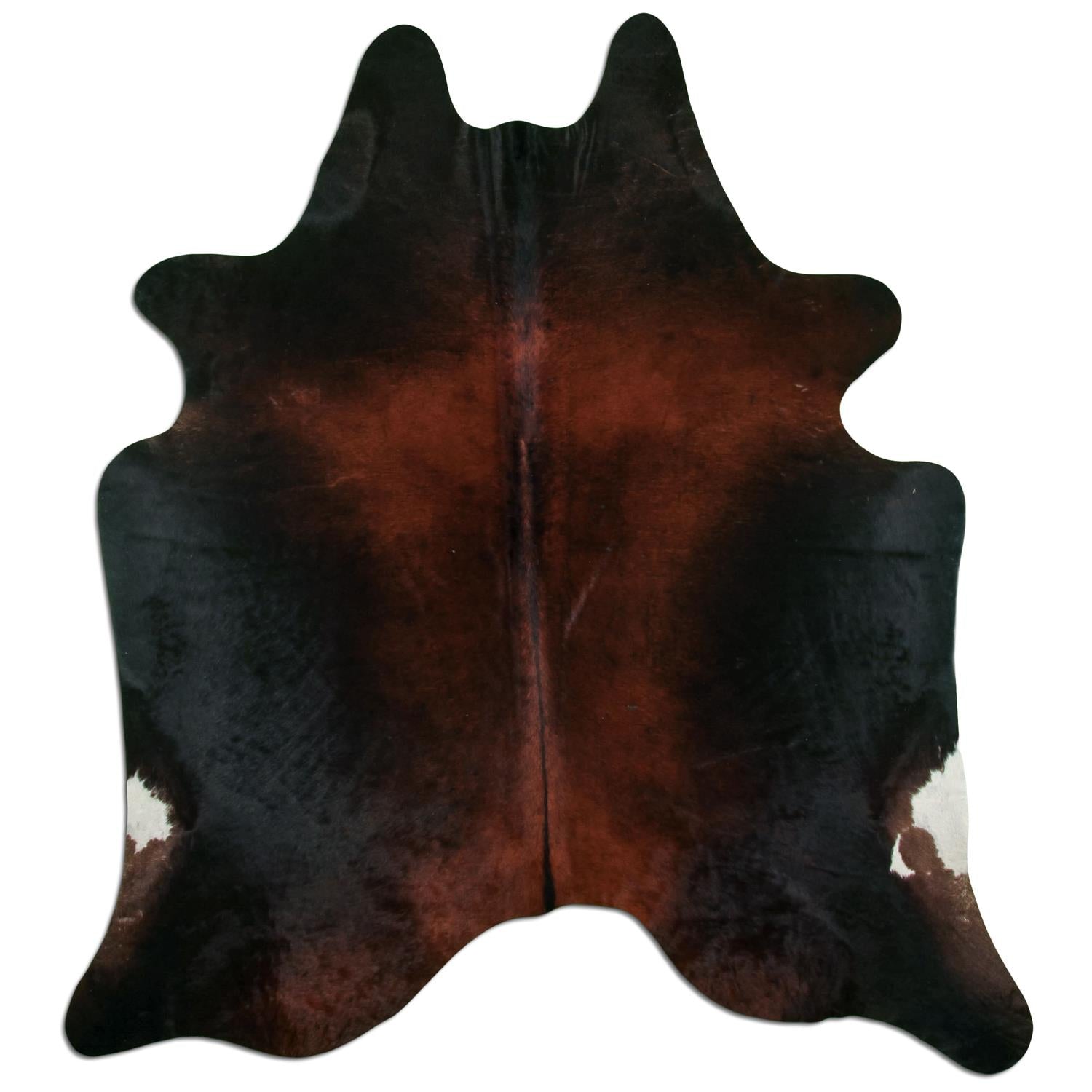 Dieses Kuhfell kombiniert eine dunkle schwarze Grundfarbe mit rotbraunen Bereichen in der Mitte sowie kleinen weißen Partien an den Rändern. Diese natürliche Farbvielfalt sorgt für eine lebendige und dennoch harmonische Optik. Das Fell wirkt besonders dekorativ und bringt einen warmen, natürlichen Charakter in den Raum.