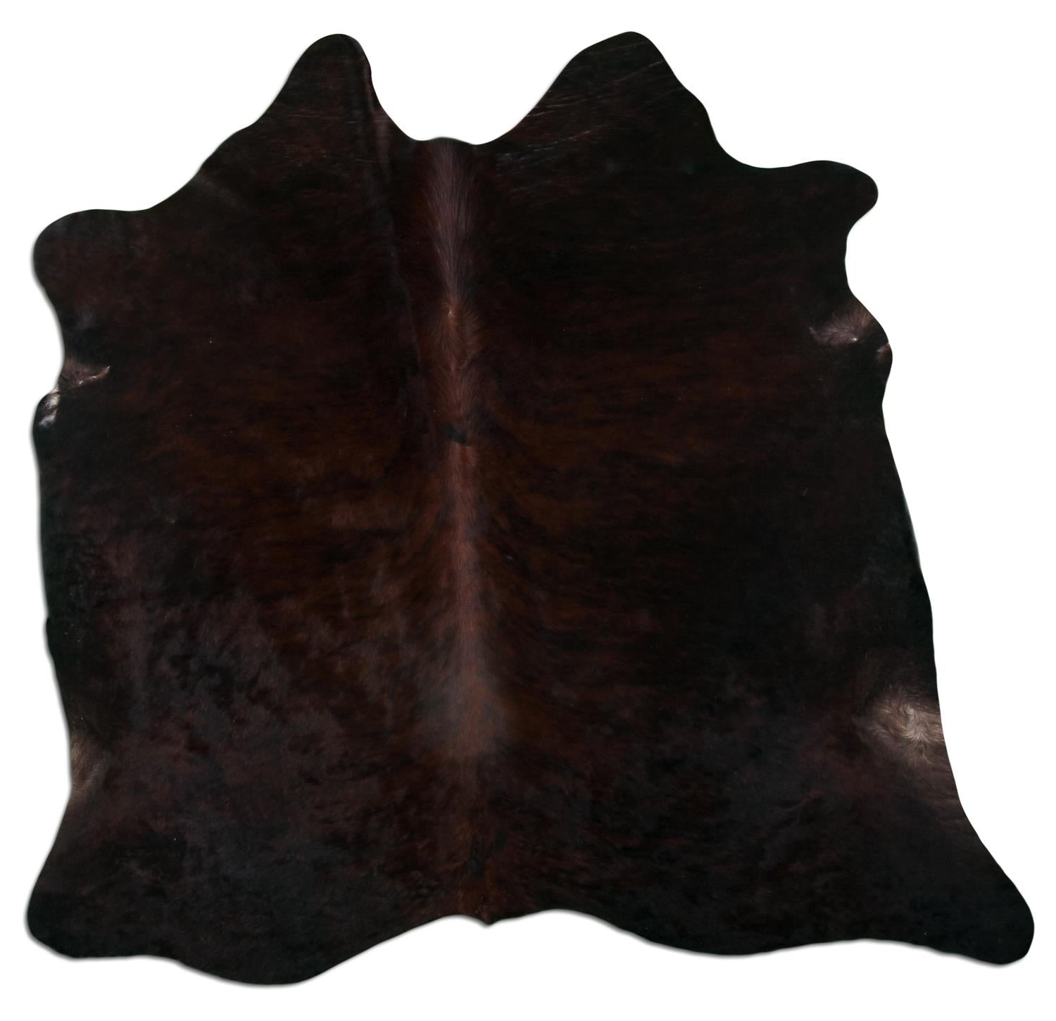Edles Kuhfell in dunklem Braun mit vereinzelten helleren Akzenten. Es sorgt für ein warmes, gemütliches Ambiente und passt perfekt zu Holzböden oder rustikalen Möbeln.