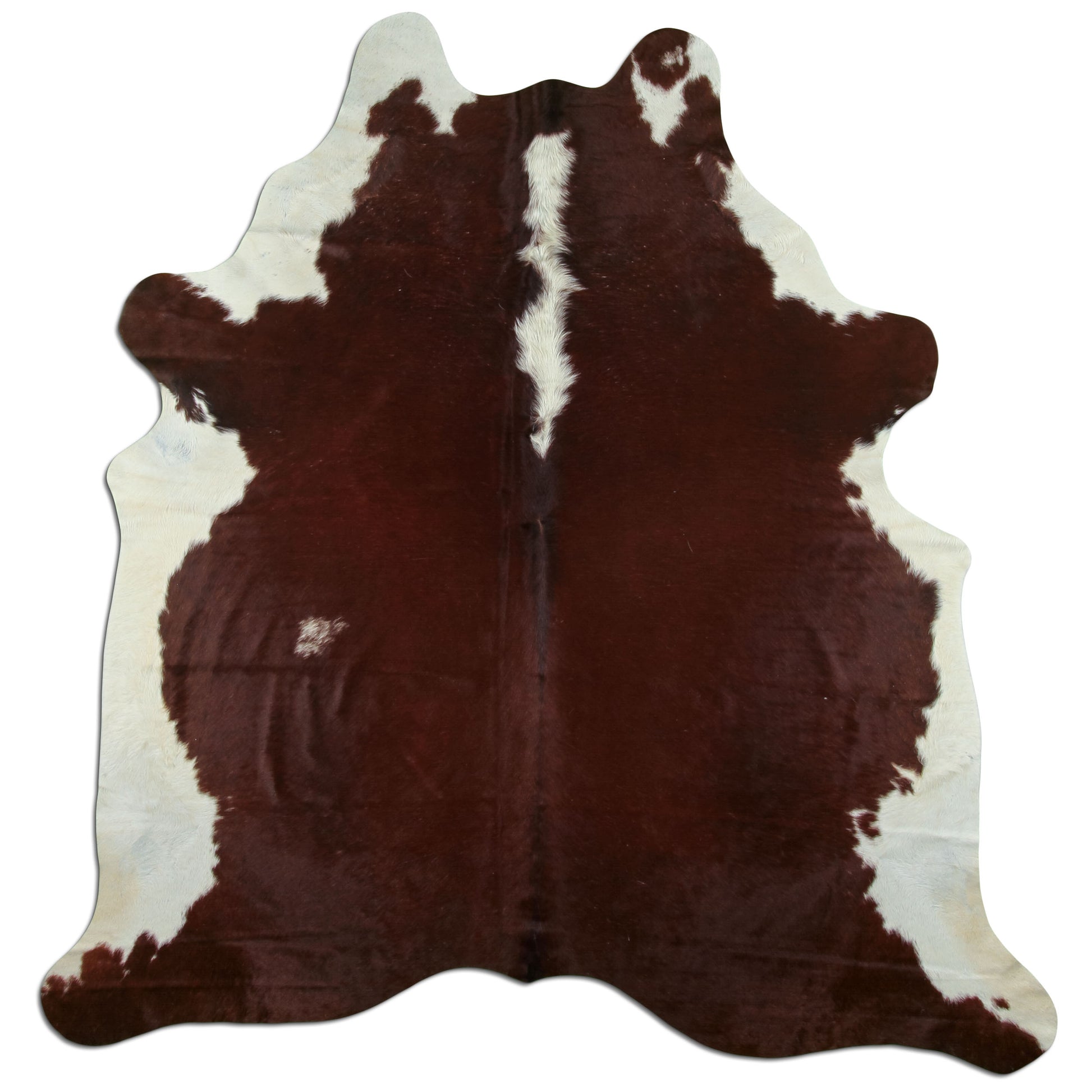 Dieses Fell verbindet dunkles Rotbraun mit ausdrucksstarken weißen Partien und eignet sich ideal als charakterstarker Blickfang in modernen oder rustikalen Räumen.