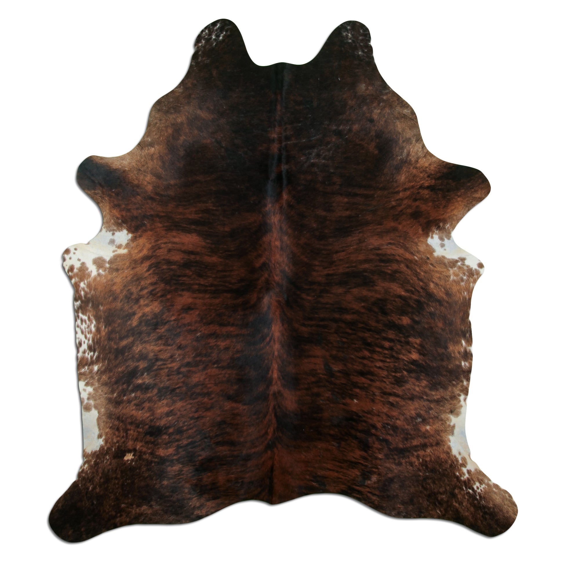 Ein braun-weiß gemustertes Kuhfell mit natürlicher Zeichnung und hellen Akzenten. Die Kombination aus warmen Brauntönen und klaren Weißbereichen wirkt lebendig und modern und lässt sich vielseitig dekorativ einsetzen.
