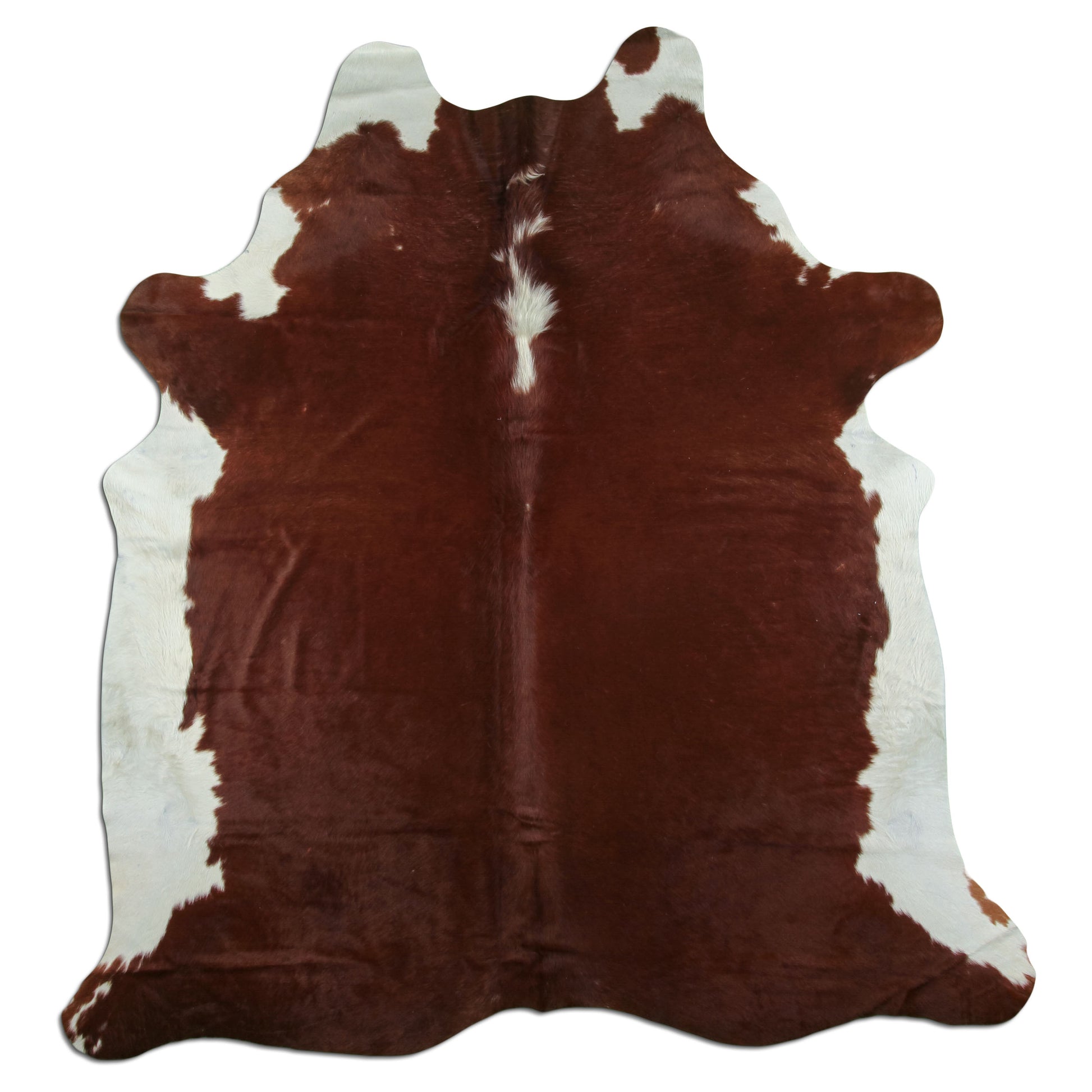 Ein intensives rotbraunes Kuhfell mit markanten weißen Bereichen, das durch seine klare Zeichnung besonders edel und kraftvoll wirkt.