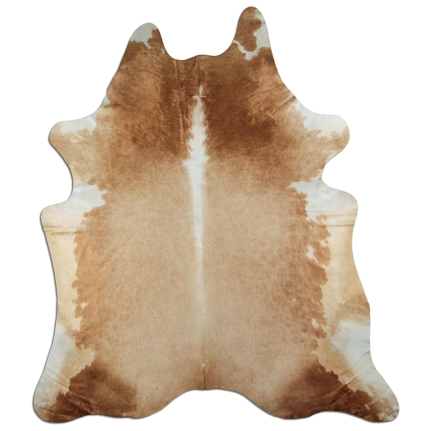 Helles Kuhfell mit warmem Beigeton, der sanft in weiße Randbereiche übergeht. Es wirkt freundlich, frisch und bringt Leichtigkeit in den Raum.