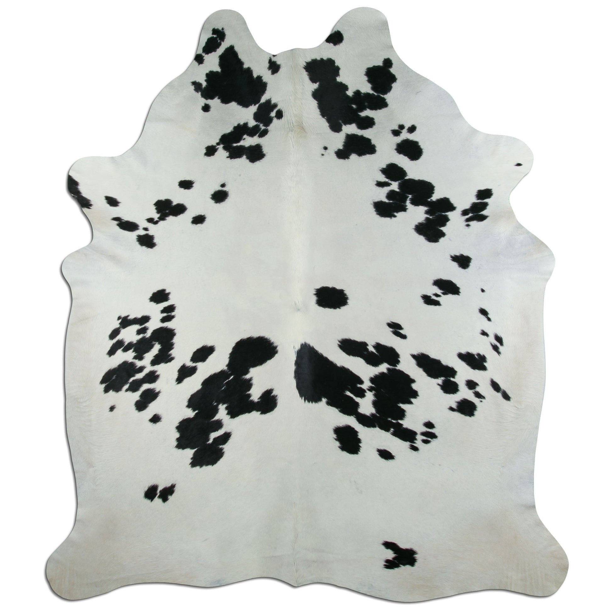 Dieses Fell zeigt ein lebhaftes Muster mit vielen kleineren schwarzen Tupfen auf heller Grundfarbe. Die unregelmäßige Verteilung erzeugt Dynamik und macht das Fell zu einem dekorativen Blickfang in jedem Raum.